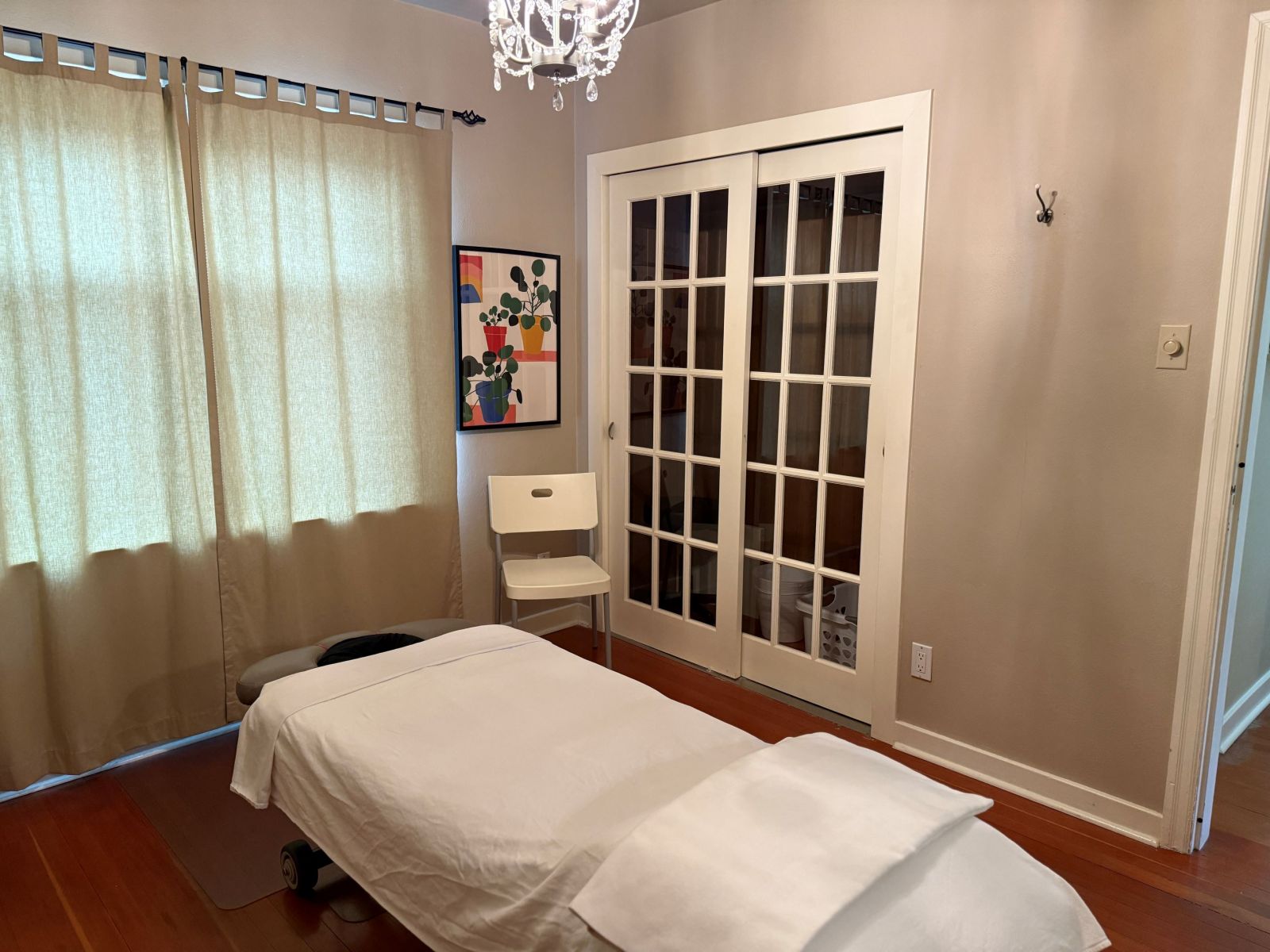 We offer full daytime reception including laundry, billing, and booking services done for you. The room is spacious with an electric table, towel warmer & massage supplies included. All you need to bring is your hands!